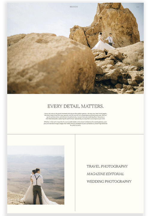 A legjobb felhasználói élmény alapján és marketing szempontok szerint felépített Squarespace weboldal sablonjaim rugalmasak alakíthatók saját stílusodra, illetve tovább bővíthetők aloldalakkal, shop funkcióval, hírlevél küldéssel, időpont foglalóval, stb. Nem sablonos megoldás, egyedi, rád szabott eredmény vár.